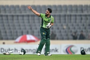 Agha tried to pick up the ball at the non-striker’s